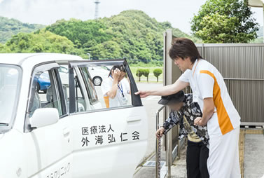 送迎車にて当クリニックへご来院いただきます。安全運転に努めます。