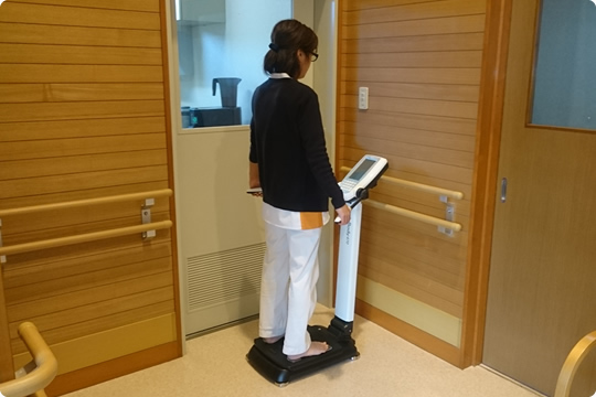 当院では、検査データに基づき医師、理学療法士がそれぞれ生活習慣病や疾患の予防・治療、食事指導、運動(リハビリテーション)の方法についてサポートしています。InBody測定については、お電話、または窓口でお尋ねください。医師の指示に基づき、測定を行います。